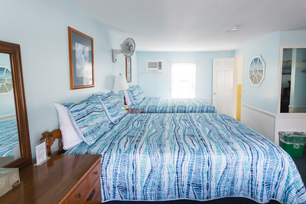 Our Double Queen room includes 2 queen size beds, 2 arm chairs, a dining table and several other amenities.